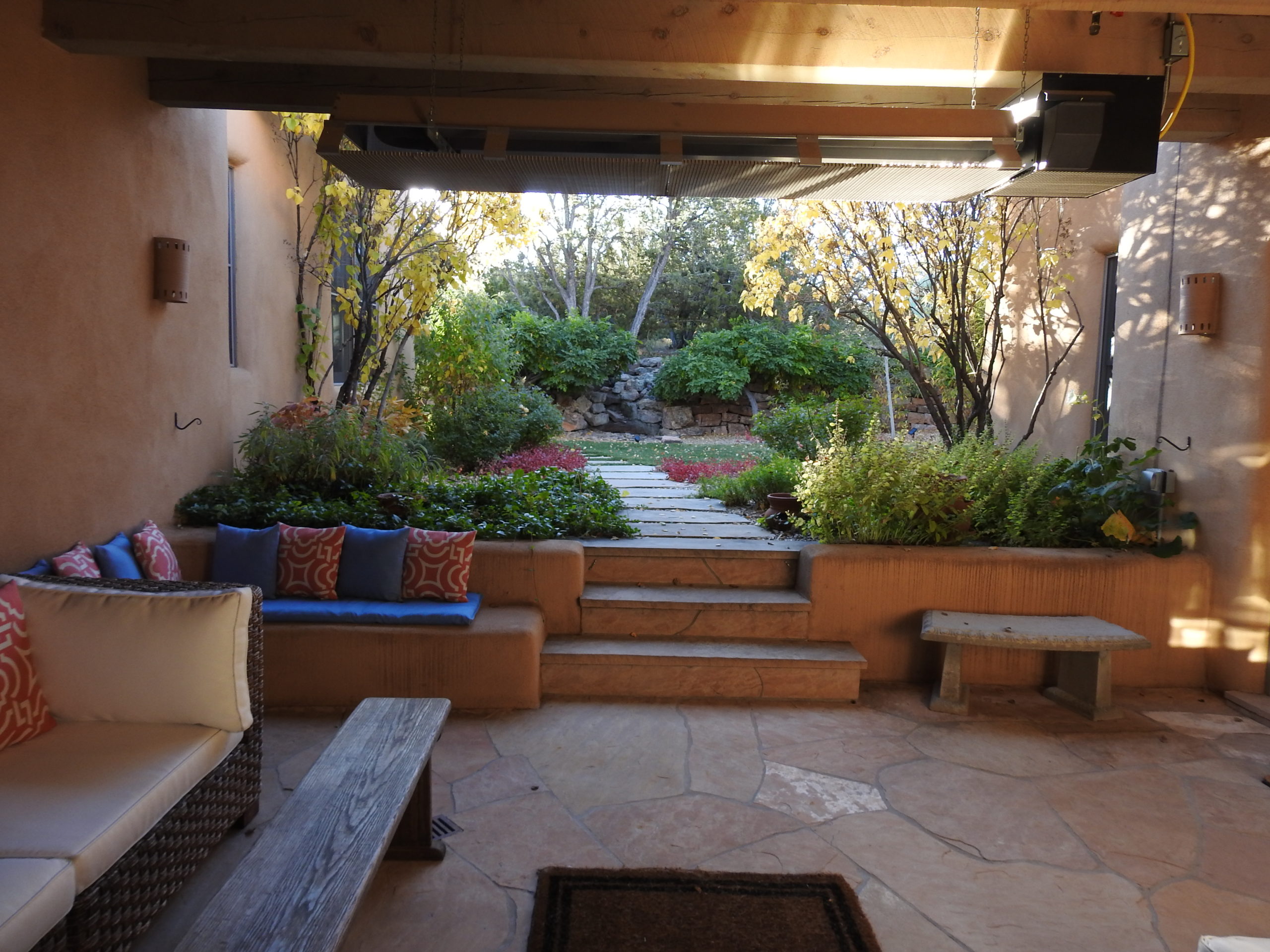Views to Colorado! Blue Pine Estate is only minutes from the Plaza and is surrounded by nature and mountains! When you stay at Blue Pines you will have every comfort of home. The home has a flawless interior design, Sonos audio surround system, Smart tv’s and fireplaces throughout plus two incredible patios. It sits on five acres on a northern ridge top, and is an easy, scenic 5 minute drive down to the Plaza and Canyon Road areas. There is wilderness to explore all around the estate, as well as a hot tub for a late night soak. You can hike, bird watch and relax the days away. While there you will be close to skiing, white water rafting, shopping and some of the finest Mexican food you can find. Don’t forget to enjoy coffee with the unbelievable view of the mountains, and the sunset from the heated patio.